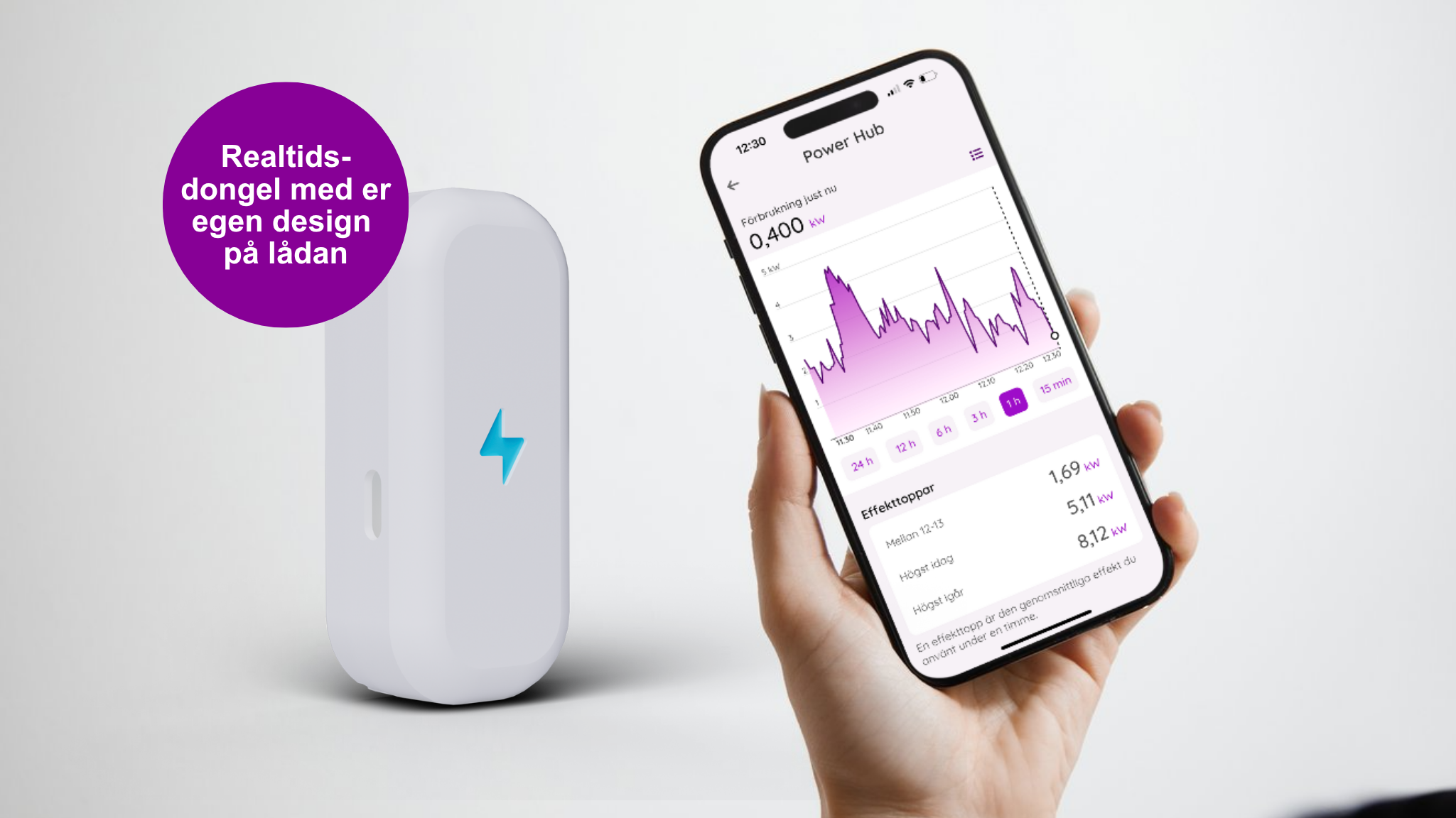 Tillsammans blir appen och hubben ett enkelt sätt för elkonsumenten att se – och påverka – sin elanvändning i stunden.